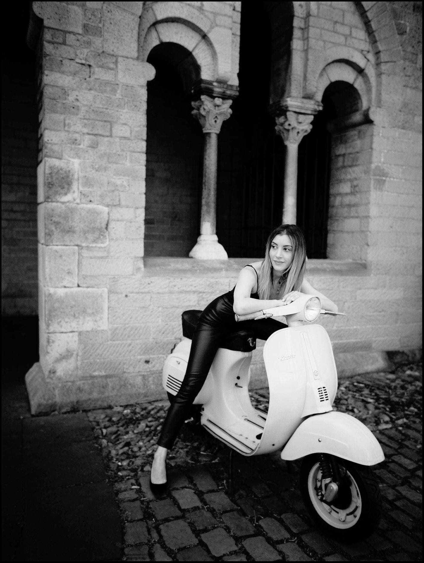 MK: Si, para cada escena he utilizado una única foto de base para la acción de la protagonista. La foto ha sido realizado por el fotógrafo Philip Lethen con una cámara Mamya, que es una cámara de medio formato analógica. La foto la hicimos en el año 2020, en medio de la crisis de COVID. La idea para la serie de fotos se basaba en una película del ano 1968 “Girl on a motorcycle” de Jack Cardiff con Alain Delon y Marianne Faithfull. La protagonista se casa y luego se va con su moto a lo largo de Francia para encontrarse con su amante en Heidelberg. La historia representa el conflicto de la época de la “buena mujer casada” y la libertad de la motociclista. No hay mucha historia en este guion, a parte de los diálogos internos de la protagonista. Como un dialogo consigo misma. En inglés se dice “I am alone in my head”. Muchos anos después, cuando surgió la música de Cat 35 comencé a utilizar y experimentar con las fotos del ano 2020. Me di cuenta de que estaban muy bien para realizar pequeños vídeos. Decidí que Peri Sahin –la cantante– se moviera a través de Nápoles de noche. Sola. Como la chica en la película de Cardiff. La música refleja la tensión y el conflicto interno y la letra tematiza la historia del ángel caído. Historia que se interpretaría aquí como el deseo de liberarse y vivir sus sueños, pero al mismo tiempo de “caer” a lo malo o diabólico. La estética es oscura, casi supra real, con calles demasiada limpias. Una estética que se acerca a la de la película de Sin City –entre Comic y Cine-. Las escenas están producidas con muy pocas instrucciones para la IA. He utilizado hailuo.ai. De hecho: he creado el vídeo y la música al mismo tiempo. El video avanzando influía en la música y al revés. Fue muy divertido hacerlo.